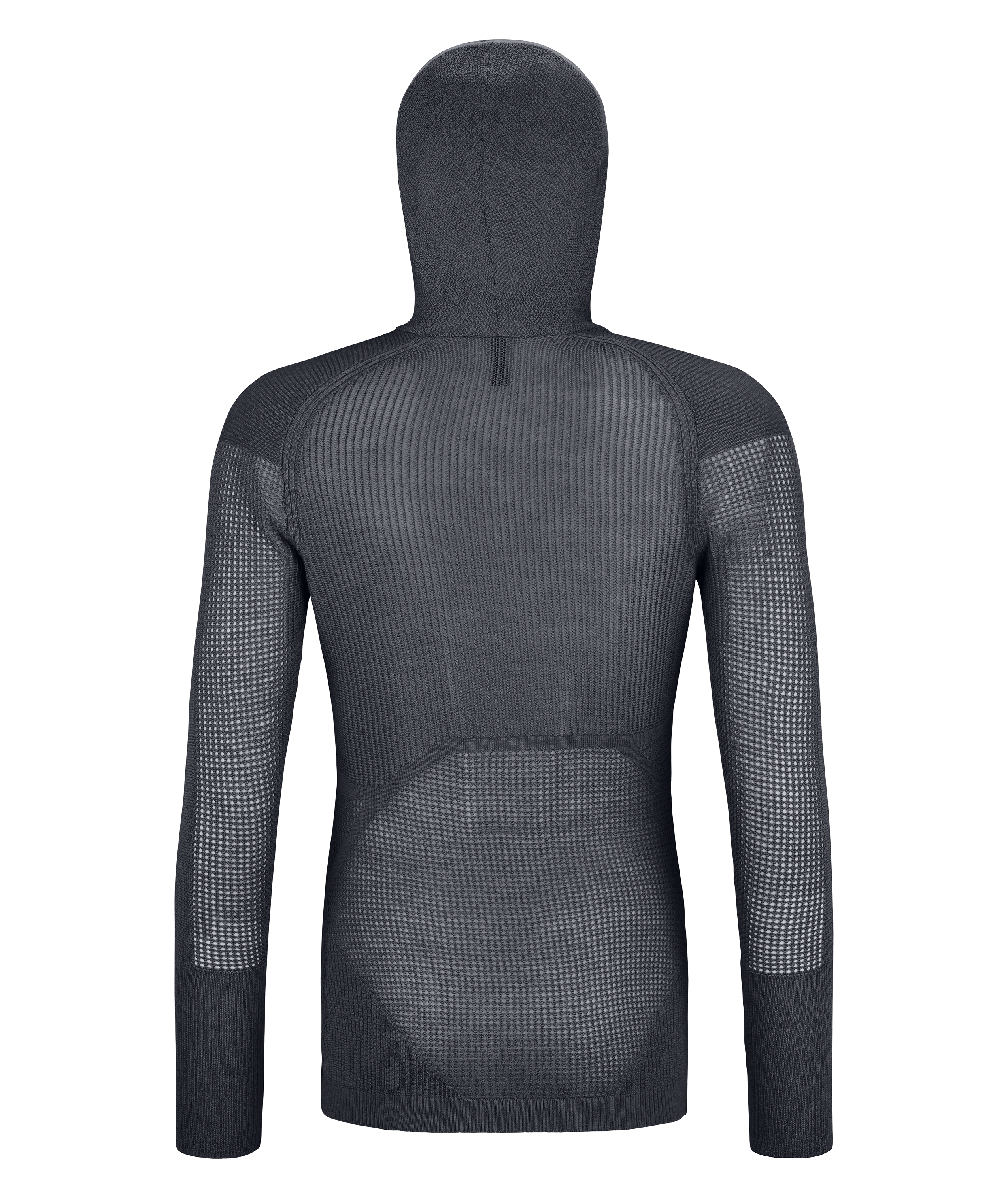 Der HOODY besteht aus 99 % feiner Merinowolle und punktet darüber hinaus mit einer ausgeklügelten Materialstruktur: Dank seiner Netzstruktur an Rumpf und im Armbereich transportiert der superleichte Baselayer perfekt die Feuchtigkeit und sorgt für Ventilation. Gleichzeitig hält die besondere Struktur durch ihre Lufteinschlüsse besonders warm. Natürliche Klimakontrolle: Merinowolle ist von Natur aus temperatur- und feuchtigkeitsregulierend. Ein kleines Packmaß inklusive idealem Gewicht-Wärmeleistungs-Verhältnis freuen alle Tourengeher, die Wert auf Gewicht und gleichzeitig Komfort legen. Der Brustbereich ist geschlossen gestrickt und damit blickdicht. Die Kapuze ist hochgeschlossen und liegt eng an. So hält sie auch den Hals und Nacken angenehm warm, wenn man die Kapuze nicht trägt.
