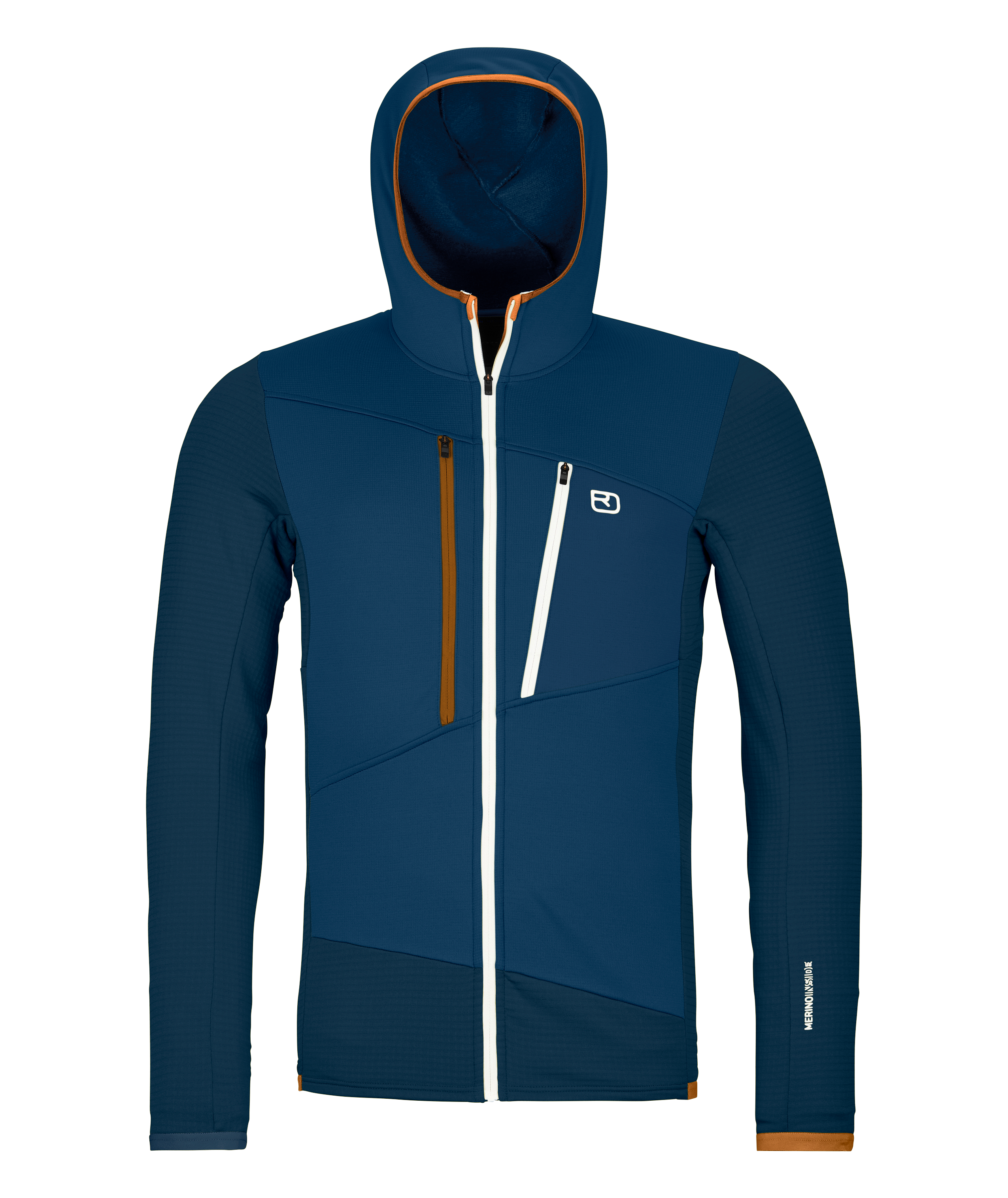 Das MERINO FLEECE GRID Material bindet in seiner feinen Waffelstruktur warme Luft auf der Innenseite und gibt Feuchtigkeit nach außen ab, sodass der Hoody einerseits angenehm wärmt, andererseits aber auch schnell trocknet und äußerst atmungsaktiv ist. Die angenehm weiche Merinowolle auf der Haut sorgt für eine optimale Klimaregulierung und wirkt gleichzeitig geruchshemmend. An exponierten Stellen wie Brust, Schultern und Kopf schützen Einsätze aus elastischem und atmungsaktiven MERINO FLEECE LIGHT vor Wind und Kälte.