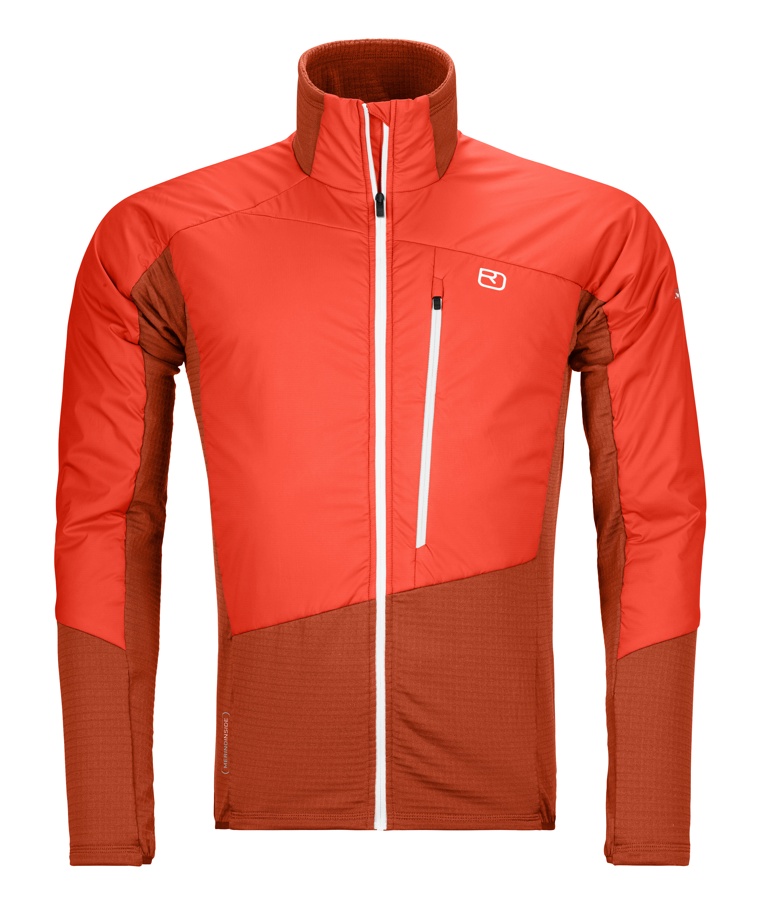 Die 60 g/m² Swisswool Füllung kommt überall dort zum Einsatz, wo zusätzlicher Schutz und Wärme benötigt wird. Eingepackt ist die nachhaltige Schweizer Schurwolle in ein dehnbares, atmungsaktives und windabweisendes Swisswool TEC-STRETCH Material. Abgestimmt auf die leichte Füllung und das elastische Außenmaterial, wird unser MERINO FLEECE GRID in der Hybrid-Jacke verarbeitet: Das Fleece Material gibt nicht nur viel Bewegungsfreiheit und ist angenehm auf der Haut, sondern weist dank der Kanalstruktur ein hohes Wärmerückhaltevermögen auf. Zudem reguliert die tasmanische Merinowolle auf der Innenseite den Feuchtigkeits- und Temperaturhaushalt, ist weich auf der Haut und hat von Natur aus geruchsneutralisierende Eigenschaften. Die Kombination aus Swisswool im Kinnbereich und FLEECE GRID MATERIAL im Nacken sorgt für einen optimalen Klimakomfort. Die rucksackoptimierte Brusttasche bietet Stauraum für Riegel, Handy oder Karte.