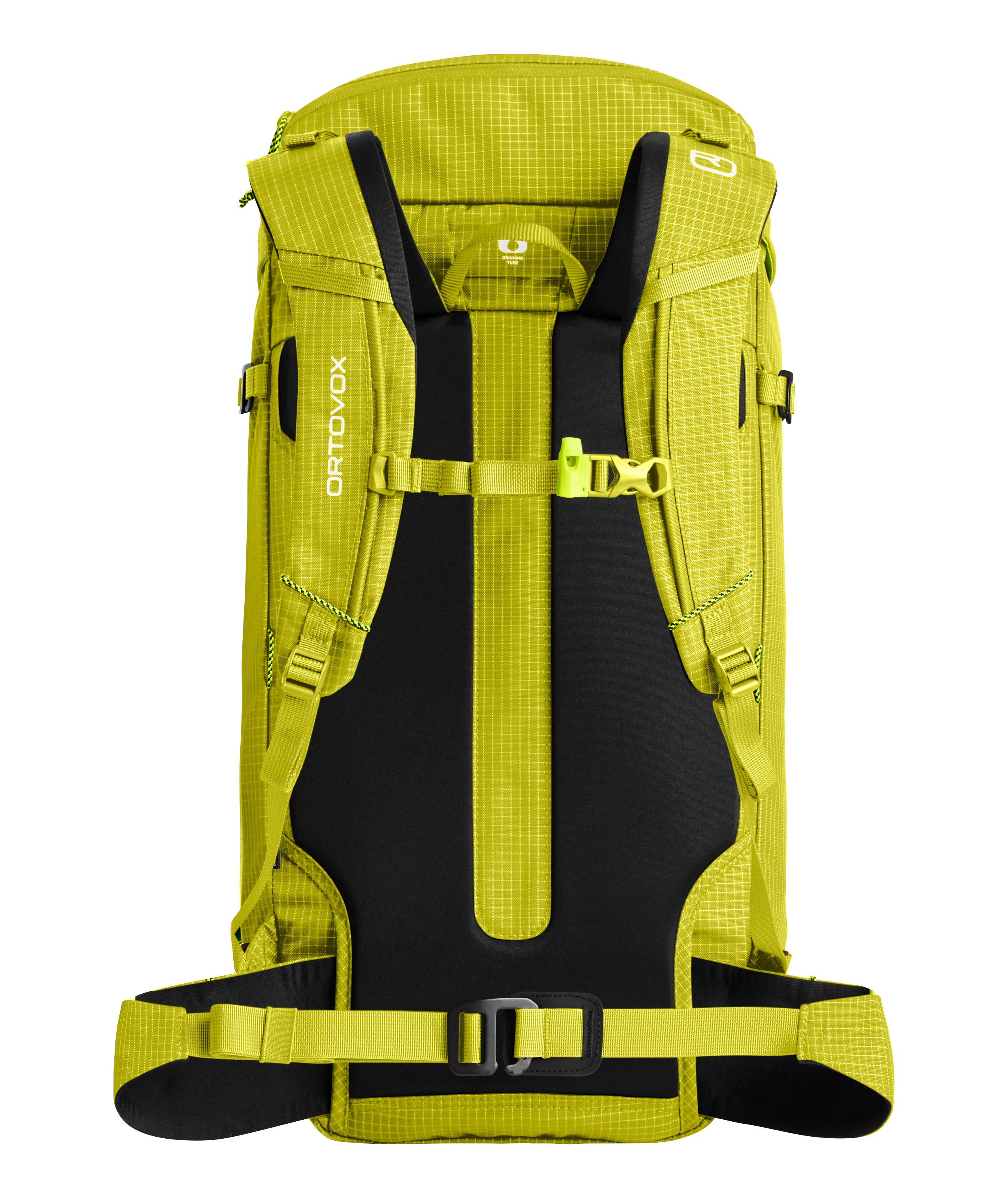 Das Rückensystem dieses Kletterrucksacks zeichnet sich durch einen leichten, herausnehmbaren Aluminiumrahmen und ein Vollkontakt-Tragesystem aus. Der Rahmen ist sehr flexibel, aber in der Horizontalen steif, um möglichst viel Gewicht aufzunehmen. Aufgrund seiner 3D Form liegt der Kletterrucksack eng am Rücken, garantiert viel Bewegungsfreiheit und höchsten Tragekomfort.